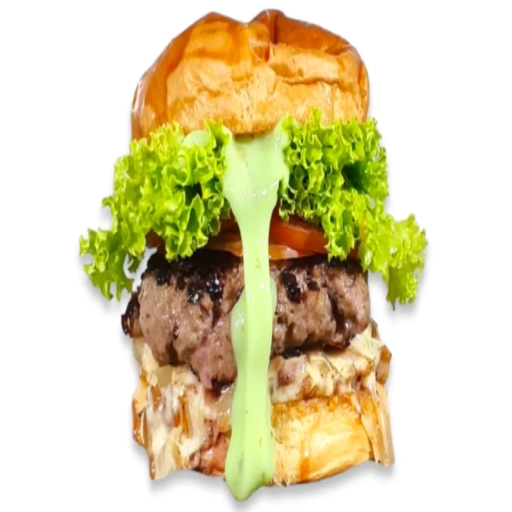 Delicioso pão Brioche Bife de picanha bovina Queijo mussarela Alface Tomate.