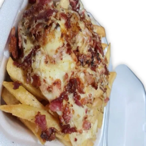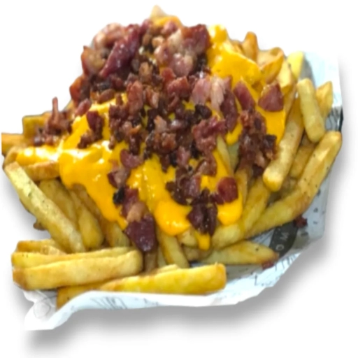 Batata Frita palito temperada com especiarias e Recheada com Muito Queijo Catupiry Original e Bacon premium.