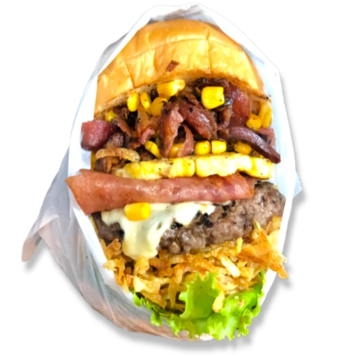 Um lanche clássico com Suculento Bife Artesanal de 120gr, Linguiça de churrasco, Bacon premium, muito queijo mussarell... Ver completo